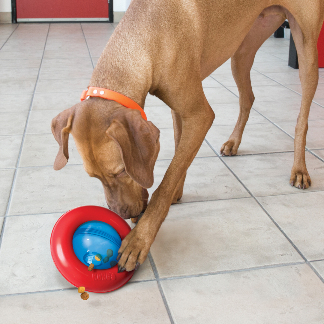 The Kong Gyro is sure to entertain with irresistible roll-and-flip action that entices and intrigues dogs. The dynamic centre spinning orb and static outer ring encourages dogs to push, paw...