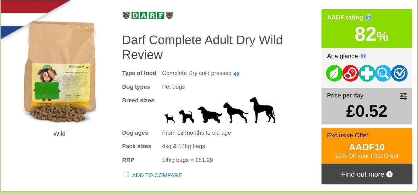 Wild Cold-pressed Dog Food from DARF uses Venison and Goose (both novel proteins), making it a fantastic choice for dogs with food allergies and intolerances.